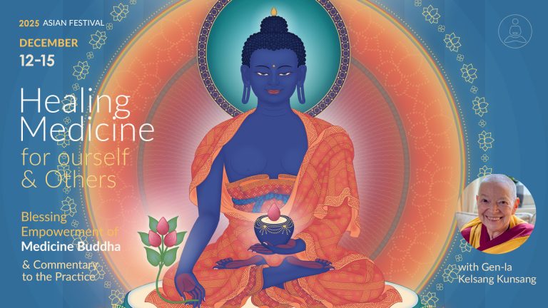 We will receive the blessing empowerment of Medicine Buddha and commentary to the practice. Medicine Buddha is the embodiment of the healing power of all enlightened beings. His function is to release living beings from outer and inner sickness by bestowing blessings upon them. See the Asian festival website for full information