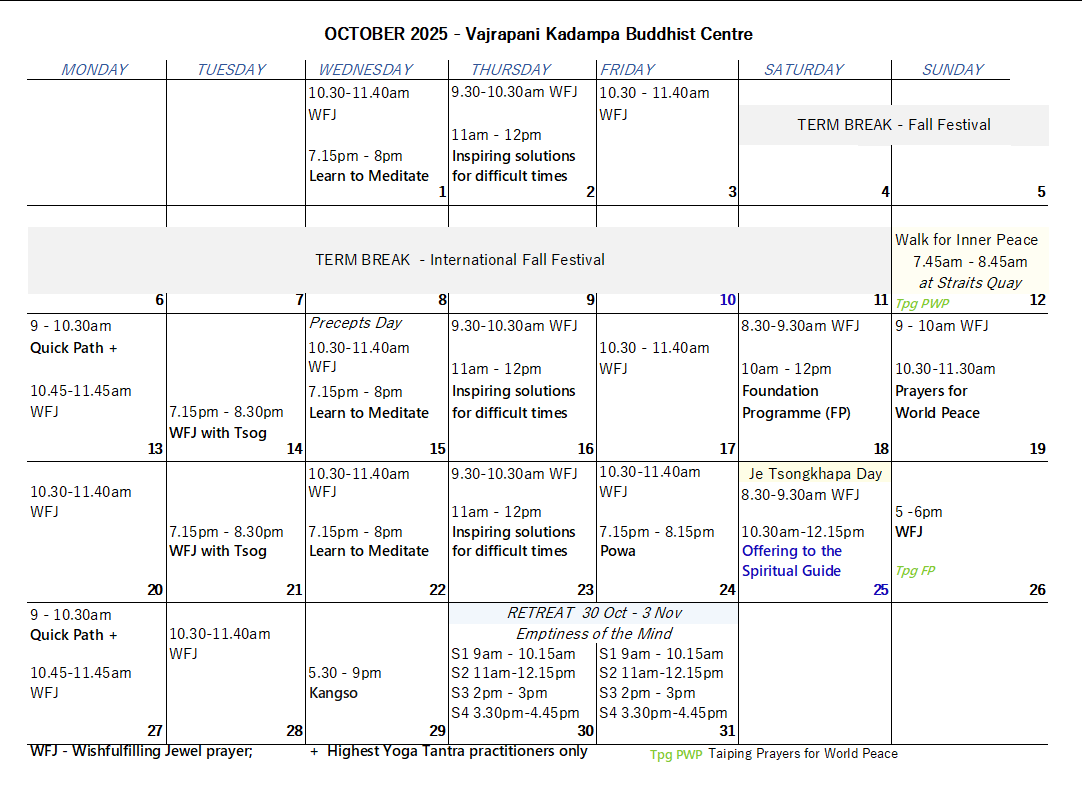 We will use the prayer booklet ‘Heart Jewel’. The final session each day will be unguided and will include prayers to the Dharma Protector.