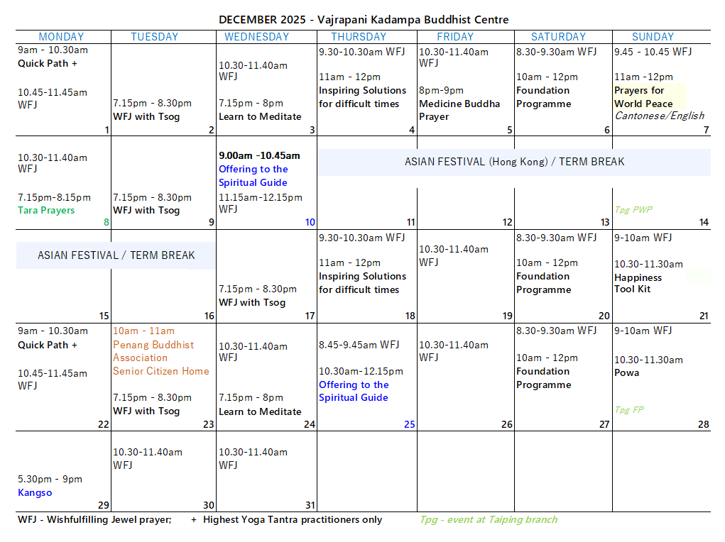 Our Kadampa Asian Festival this year will be in Hong Kong, from 12th to 15th December.
