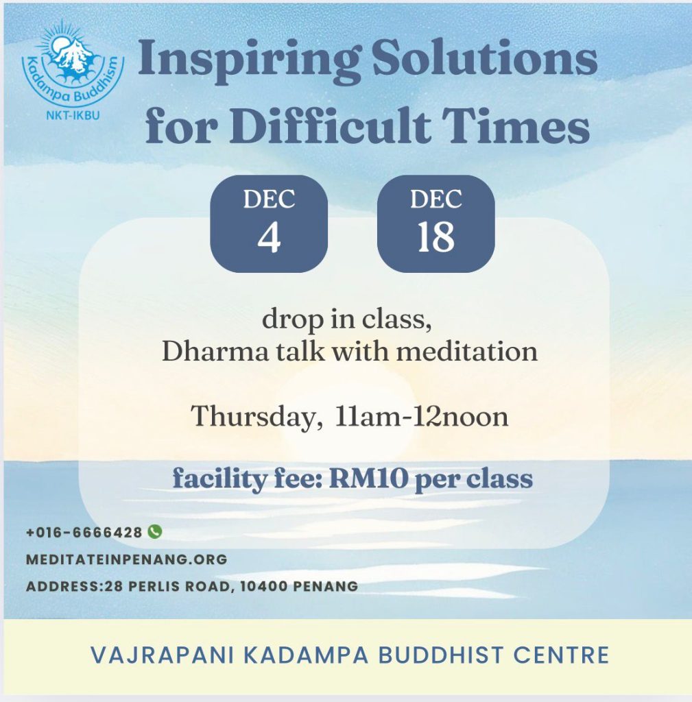 Life is challenging. We need to equip our mind with tools, which are special views, intentions and practices taught by Buddha, because these will help us remain happy regardless of what life throws at us. In this class we learn how we can accomplish this through training in meditation as well as practising in daily life.