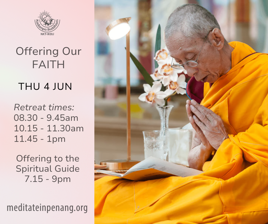 As faithful modern Kadampa disciples we remember the great kindness of Venerable Geshe-la every day, but on this auspicious day, with minds of rejoicing and gratitude, we will offer him our faith through using the special prayer ‘Request to the Holy Spiritual Guide Venerable Geshe Kelsang Gyatso from his Faithful Disciples’ and collecting our Guru’s name mantra in a half-day retreat.