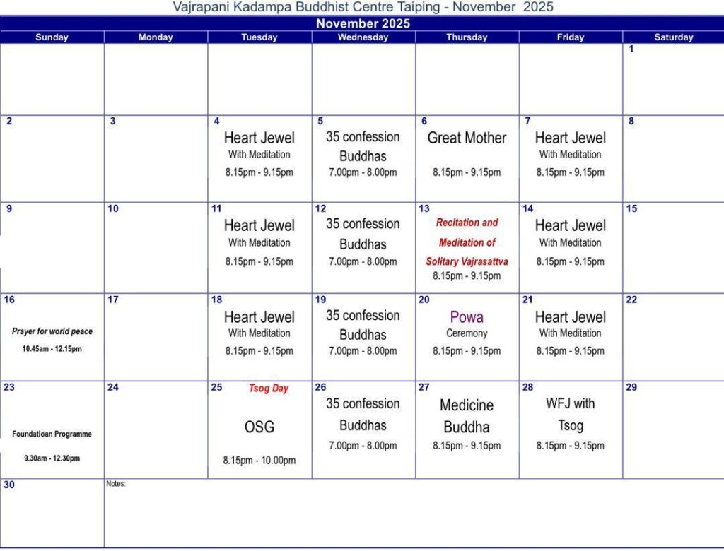 In addition, a main Centre event (course or retreat) may be held occasionally at Taiping branch.